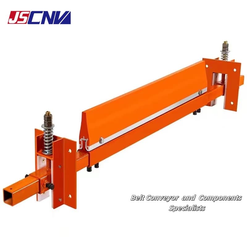 Едноредовият почистващ препарат е за почистване на обратната лента. Използва се главно пред задната огъваща шайба и пред тежкото вертикално опъващо устройство на лентовия транспортьор. Може да се използва особено за почистване на празната част на двупосочната лента за бягане. Има характеристиките на киселинна и алкална устойчивост, забавящ горенето и антистатичен, висока устойчивост на износване и не уврежда колана. Острието е изработено от полиуретан с висока якост, V-образният дизайн осигурява чистота на колана, а автоматичният гравитачен дизайн осигурява автоматична компенсация, когато острието се износи.